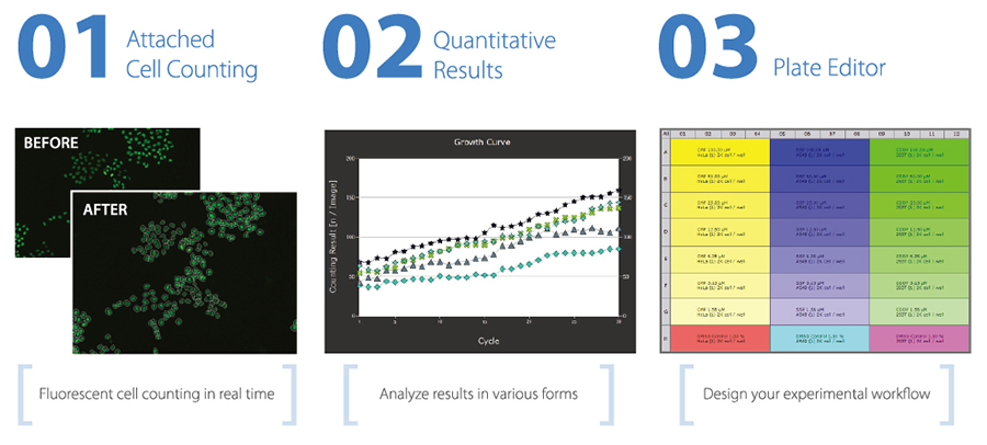 Dispõe de módulos de análise dedicados para ensaios Scratch-wound e Esferóides.
