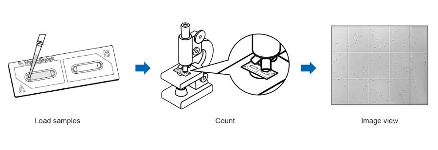 Simples e conveniente em apenas dois passos (carregar amostras, contar)